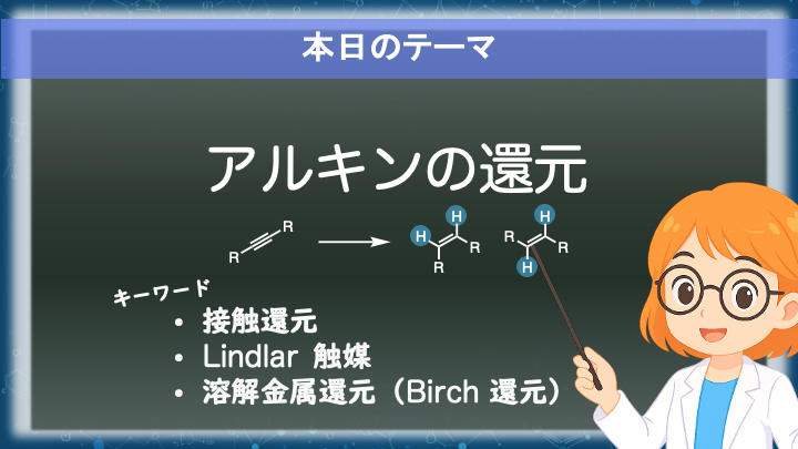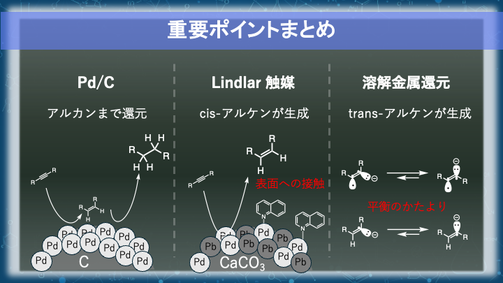 アルキンの還元反応を学ぶとき、「Pd/Cならアルカン、Lindlar触媒ならcis、Birch還元ならtrans」と覚えた経験はありませんか。