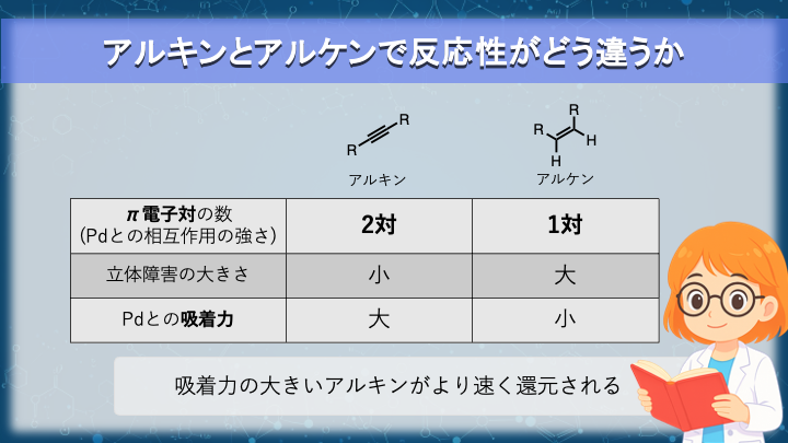 接触還元ではアルキンとアルケンで反応性がどう違うか