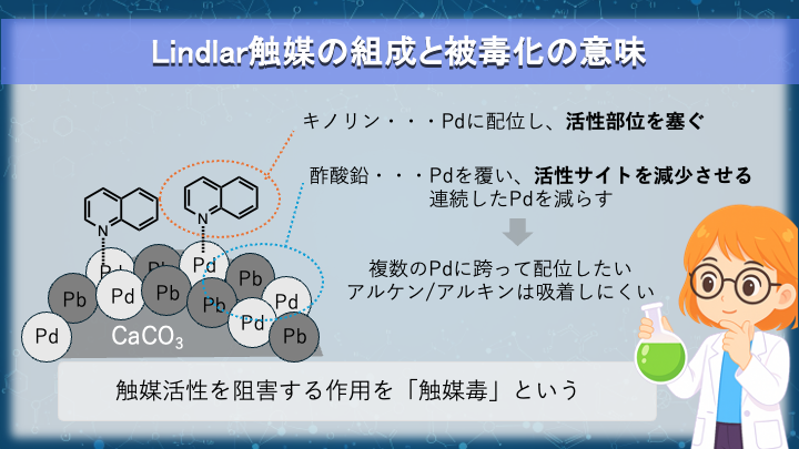 Lindlar 触媒では、Pd 表面の有効サイトが大きく制限されています。