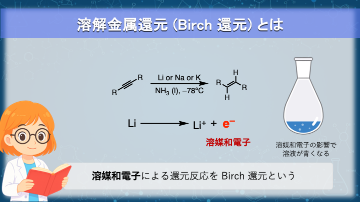 Birch還元は、アルキンの還元とベンゼン環の還元を両方指して言います。