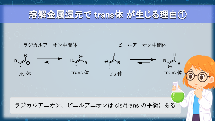 溶解金属還元でtrans体 (アンチ付加) が生じる理由①
