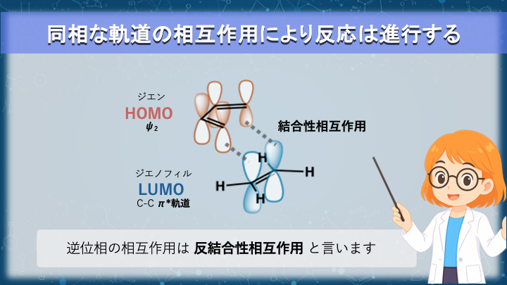 軌道支配な反応は同相な軌道の相互作用により進行する