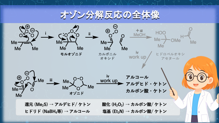 オゾン分解は、途中で不安定な中間体を経由しながら、
