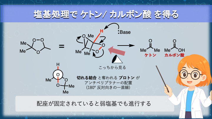 生成する、酸素原子が3つ連続した五員環構造を